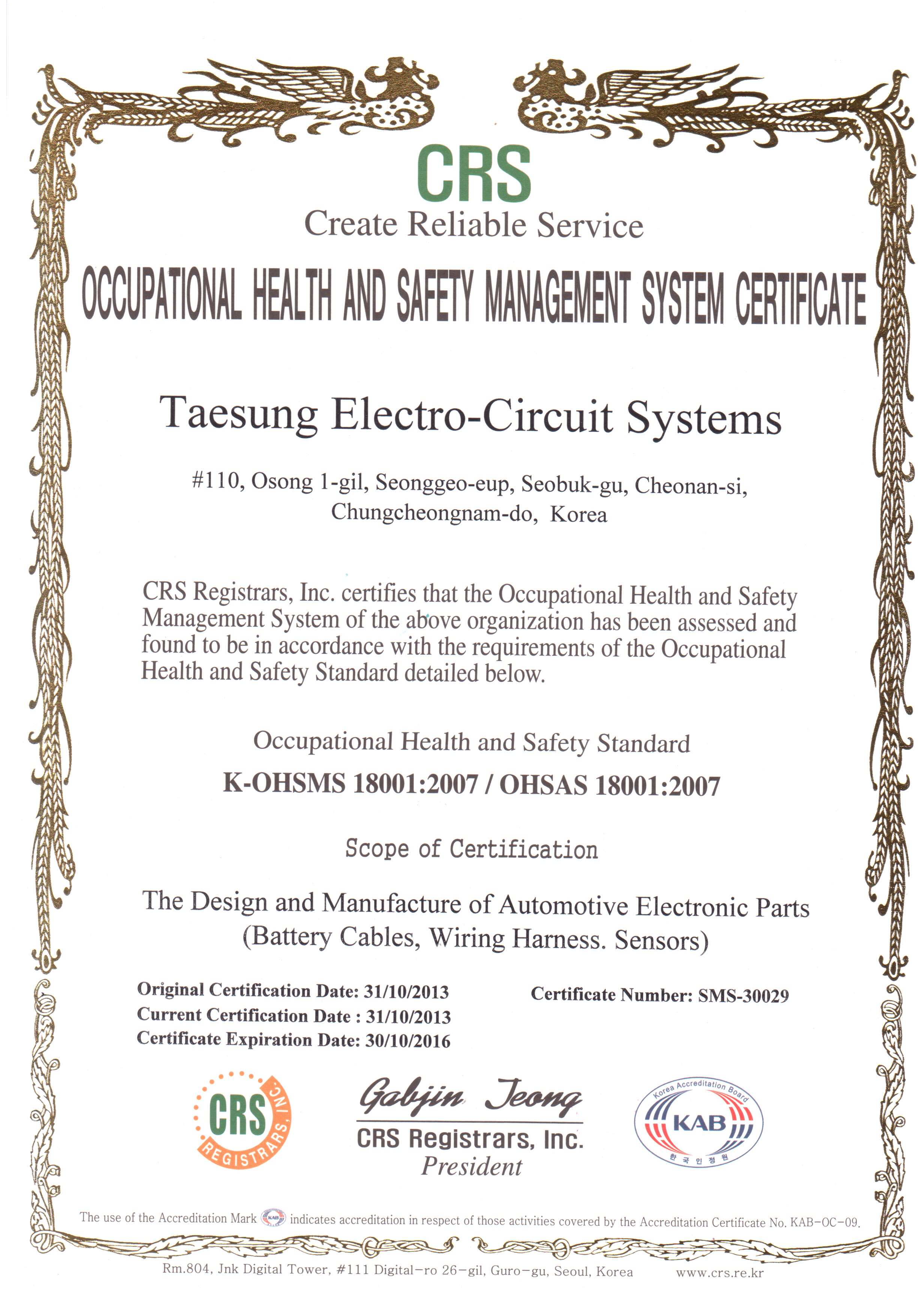 [2013년 10월] OHSAS18001 인증 획득